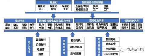 ③支撐技術分為五個方面:汽車動力電池、新能源汽車電驅動總成系統(tǒng)、充電基礎設施、汽車輕量化、汽車智能制造與關鍵裝備。其中:汽車動力電池是最關鍵、最核心地位。