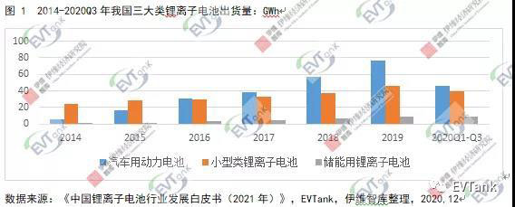 按應(yīng)用領(lǐng)域分類,鋰離子電池主要分為汽車用動(dòng)力電池(EV Lib)、小型類鋰離子電池(Small Lib)和儲(chǔ)能用鋰離子電池(ESS Lib)三大類,其中,汽車用動(dòng)力電池出貨量主要受新能源汽車銷量的影響,近年來各國(guó)對(duì)環(huán)保的重視驅(qū)動(dòng)新能源汽車滲透率逐步提高,雖然上半年受疫情影響,汽車用動(dòng)力電池出貨量同比下滑45.8%,但是下半年新能源汽車產(chǎn)銷量的單月同比大幅增長(zhǎng),截止到2020年11月,我國(guó)汽車用動(dòng)力電池累計(jì)出貨量62.5Gwh,累計(jì)同比下降幅度已經(jīng)收窄到7.0%。小型類鋰離子電池主要用于手機(jī)、電腦、電動(dòng)工具、電動(dòng)二輪車及新興消費(fèi)應(yīng)用等領(lǐng)域,2020Q1-Q3,在5G手機(jī)、電動(dòng)工具和電動(dòng)兩輪車用電池的帶動(dòng)下,我國(guó)小型類鋰離子電池出貨量達(dá)到39.7Gwh,同比增長(zhǎng)16.5%;儲(chǔ)能用鋰離子電池仍處于市場(chǎng)導(dǎo)入階段,出貨量較少,但增長(zhǎng)速度較快,在基站建設(shè)、海外儲(chǔ)能和國(guó)內(nèi)發(fā)電側(cè)儲(chǔ)能項(xiàng)目的帶動(dòng)下,2020Q1-Q3我國(guó)儲(chǔ)能電池出貨量為9.1GWh,已經(jīng)超過去年全年水平。