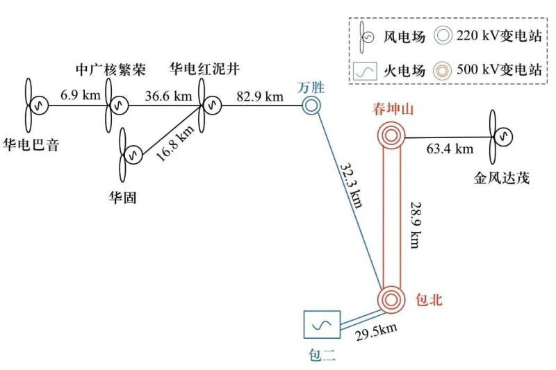內(nèi)蒙古自治區(qū)風(fēng)力發(fā)電量位列全國第一,其中包頭是最大的工業(yè)城市,該地區(qū)風(fēng)電裝機(jī)占比24%,水電裝機(jī)占比僅為2%。同時(shí),包頭地區(qū)主配網(wǎng)聯(lián)系不十分緊密,220kV電力系統(tǒng)穩(wěn)定能力較弱,110kV電力系統(tǒng)常規(guī)發(fā)電機(jī)組和水電機(jī)組分布在城外,與集中用電負(fù)荷距離較遠(yuǎn)。由于局域電網(wǎng)內(nèi)部協(xié)調(diào)能力差,運(yùn)行方式安排存在難度,存在大面積停電風(fēng)險(xiǎn)。