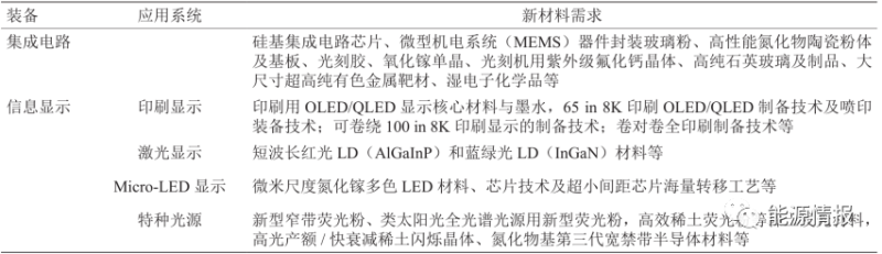 表 2 能源動力領(lǐng)域新材料需求