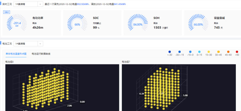此外,系統(tǒng)建立了電池健康評估模型,通過大數(shù)據(jù)分析和智能預(yù)測技術(shù),對問題電池精準診斷定位,提前預(yù)測電池故障,為客戶提供安全預(yù)警并指出安全隱患。
