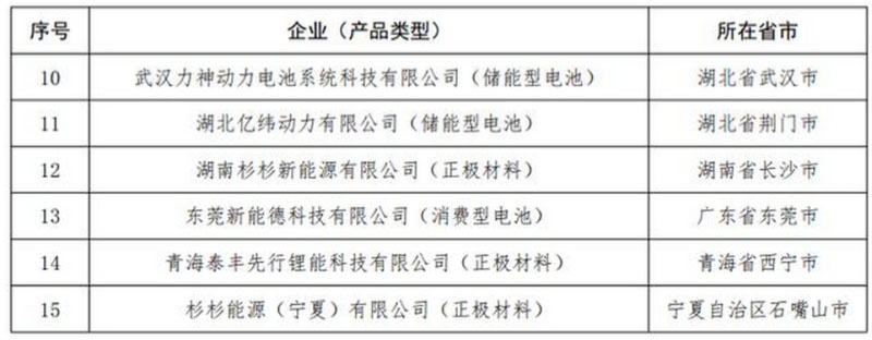 本批企業(yè)名單共15家企業(yè),包括消費型電池、儲能型電池以及正極材料生產企業(yè),國軒高科等企業(yè)名列其中。