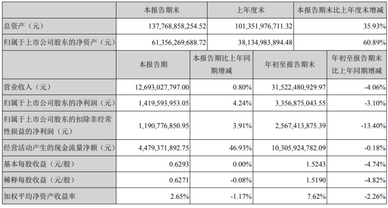 中國儲能網(wǎng)訊:10月27日,寧德時代發(fā)布2020年第三季度業(yè)績報(bào)告。該季度營收126.93億元,同比增長0.8%;凈利潤14.20億元,同比增長4.24%;今年前三季度,寧德時代營收315.22億元,同比下降4.06%;凈利潤33.57億元,同比下降3.10%。