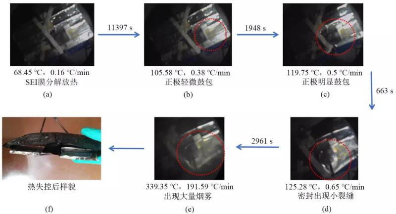 此外,為分析電池?zé)崾Э乇ㄟ^程,試驗(yàn)用ARC裝置自帶高清攝像頭記錄了電池?zé)崾Э剡^程的視頻,此高清攝像頭幀速率為25幀/秒。