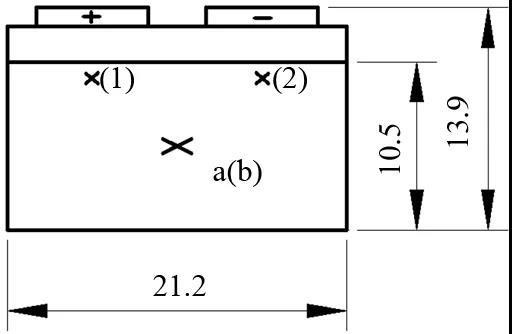 試驗(yàn)使用某廠商提供的商用軟包23 A·h NCM523[Li(Ni05Co0.2Mn0.3)O2]電池,電池尺寸如圖3所示,厚度為0.7 cm。電池負(fù)極為人造石墨,隔膜為陶瓷隔膜,電池的充放電截止電壓均為3.0~4.2 V。將電池放置在恒溫箱25 ℃環(huán)境中,用1C電流充放電3個(gè)循環(huán)測試實(shí)際容量。