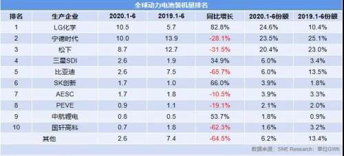 然而高光時刻過后,寧德時代卻在2020上半年的全球市場角逐中失去了王座的位置,由LG化學(xué)奪得。