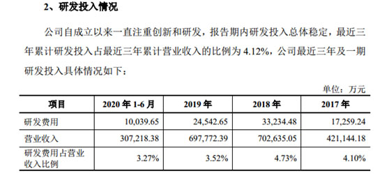 2017年、2018年、2019年和2020年上半年,廈鎢新能研發(fā)費用分別約為1.73億元、3.32億元、2.45億元和1億元。然而,這總計8.5億元的研發(fā)費用存在著諸多疑問。