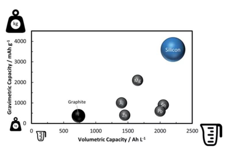 圖8 石墨和各種合金的容量比較