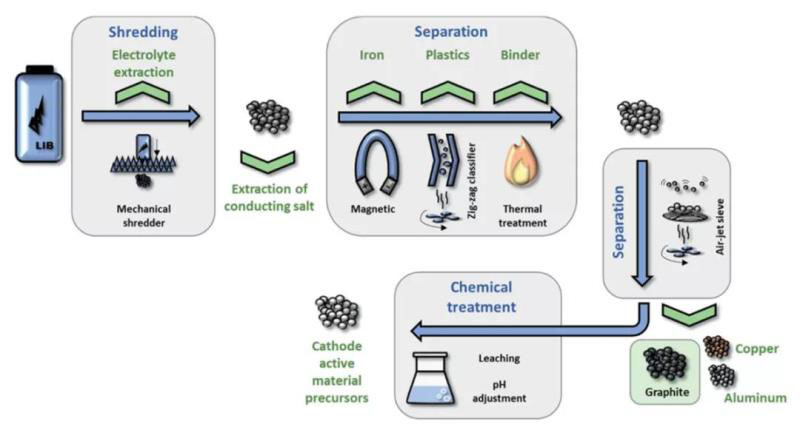 圖7 物理過程對廢棄鋰電池進(jìn)行回收(金屬,活性材料)