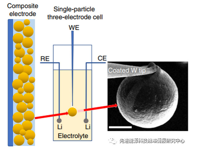 圖1 基于單個(gè)NMC顆粒的三電極電池結(jié)構(gòu)示意圖