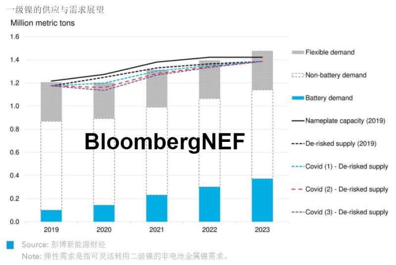 今年三季度,特斯拉汽車交付量高于分析師預(yù)期,超越豐田成為全球市值最高的車企。歐盟以電池金屬為重點(diǎn)重塑其汽車供應(yīng)鏈。根據(jù)上述行業(yè)動(dòng)態(tài),彭博新能源財(cái)經(jīng)將今年新能源乘用車電池需求的基本情景預(yù)測(cè)提高了16%,提至82GWh,意味著2020年下半年部分電池金屬供應(yīng)可能出現(xiàn)缺口。