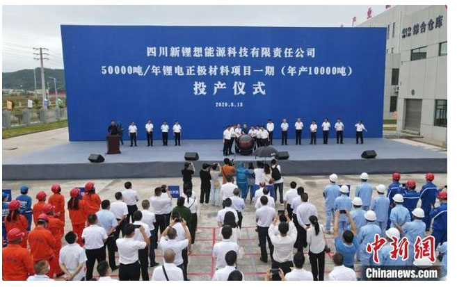 中新網(wǎng)射洪8月18日電 (記者 劉忠俊)18日,四川新鋰想能源科技有限責(zé)任公司5萬(wàn)噸/年鋰電正極材料項(xiàng)目一期(年產(chǎn)10000噸)投產(chǎn)儀式在四川射洪市鋰電園區(qū)舉行。