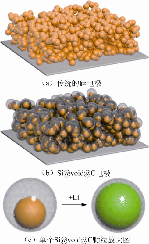 圖2 核-殼結(jié)構(gòu)的Si@void@C結(jié)構(gòu)設(shè)計(jì)示意圖