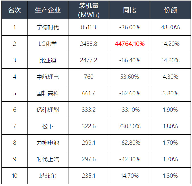 2020年中國(guó)上半年動(dòng)力電池裝機(jī)量 Top10