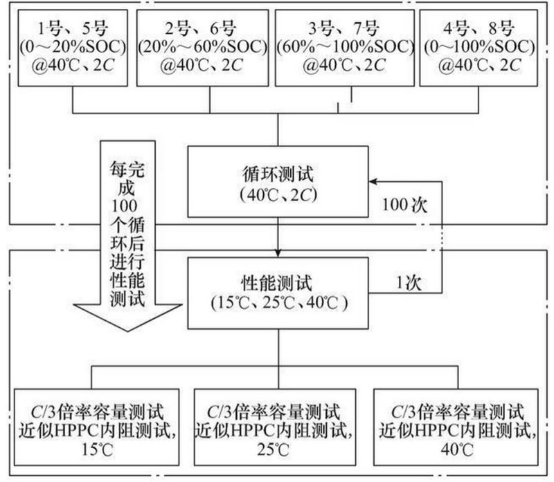 鋰離子電池在不同容量區(qū)間和不同工況應力下使用衰退性能不同。北京交通大學國家能源主動配電網技術研發(fā)中心、北京電動車輛協同創(chuàng)新中心、北京新能源汽車股份有限公司的研究人員孫丙香、劉佳、韓智強、任鵬博、張維戈,在2020年第9期《電工技術學報》上撰文,以復合材料鋰離子電池為研究對象,基于電化學相變機理對循環(huán)區(qū)間進行劃分,在分區(qū)間和全區(qū)間分別完成了累計吞吐量600次的循環(huán)測試。