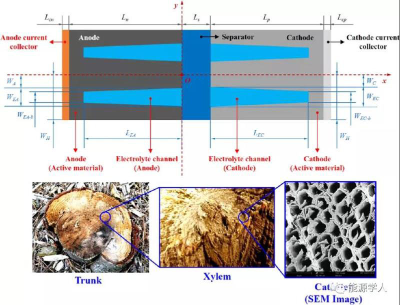 在2D平板電極中引入內(nèi)部電極層結(jié)構(gòu)(如電解液通道)以提高其有效孔隙率是提高電池性能的另一種方法,其可以在不改變電極材料或電極形狀的情況下提高其性能。因此,通道設(shè)計(jì)比復(fù)雜的3D結(jié)構(gòu)更易商業(yè)化。