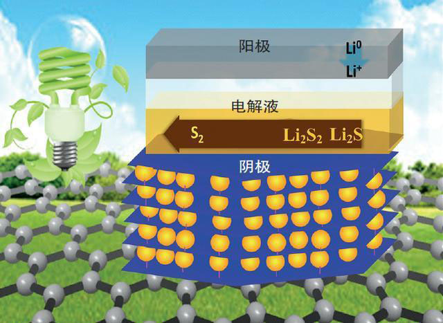 基于這三個(gè)問(wèn)題,我們?yōu)楦纳其嚵螂姵氐碾娀瘜W(xué)性能提供了新思路。我們開(kāi)發(fā)出一類新型碳/硫復(fù)合正極材料,解決了硫正極存在的導(dǎo)電性差和中間產(chǎn)物溶解穿梭等關(guān)鍵科學(xué)問(wèn)題;進(jìn)一步發(fā)展了原位鋰化碳/硫復(fù)合材料,對(duì)因使用金屬鋰作為負(fù)極可能導(dǎo)致的安全隱患提出新的解決途徑。
