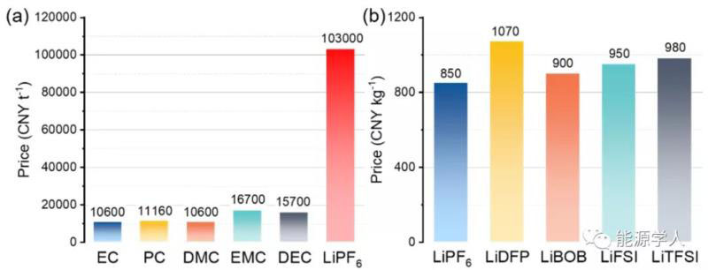 圖6 不同溶劑以及鋰鹽的價(jià)格