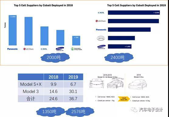 如果按照特斯拉2018年一共24.6萬(wàn)臺(tái),使用鈷為2000噸,2019年對(duì)應(yīng)的用鈷量,在NCA的條件下36.7萬(wàn)臺(tái)車(chē),2400噸鈷(這個(gè)數(shù)據(jù)是根據(jù)Adamas Intelligence來(lái)核算的)。根據(jù)之前Adamas根據(jù)單車(chē)90kwh(7kg)和78kwh(4.5kg)的描述,得到的數(shù)據(jù)為1350噸和2576噸,這里存在一些差距,推測(cè)為能量上會(huì)有差異,我們大致能為這個(gè)6000噸得到一個(gè)數(shù)量級(jí),大約30萬(wàn)臺(tái)車(chē) 2000噸,6000噸大概在90萬(wàn)臺(tái)車(chē)左右。