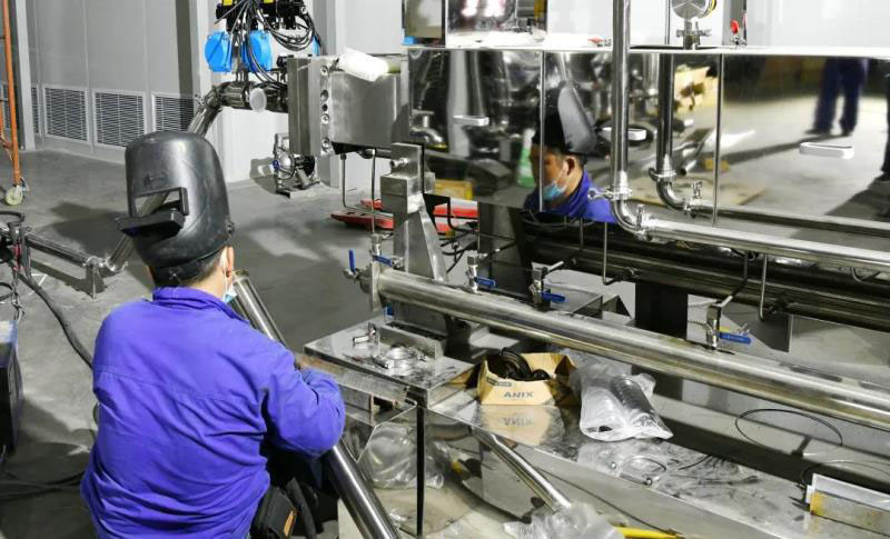 受疫情影響,現(xiàn)場施工進(jìn)度稍微有些滯后,但總體影響不大。走進(jìn)大門,廠房還在施工階段,地面上有灰塵,但依然掩蓋不住其锃亮本色,遠(yuǎn)遠(yuǎn)望去有鏡面效果。
