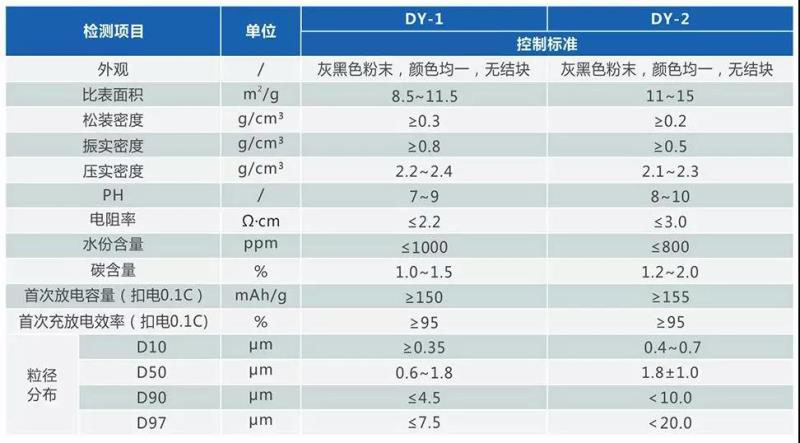貝特瑞磷酸鐵鋰產(chǎn)品的理化指標(biāo)
