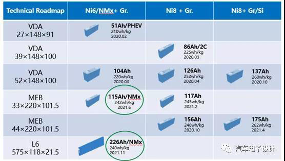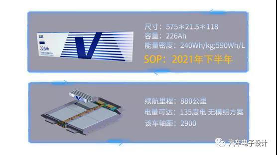 第二款是L6薄片無鈷長電芯,這個(gè)電芯的尺寸是575長度,厚度是21.5mm,有點(diǎn)像是使用軟包590的電芯把幾個(gè)電芯合起來封裝在一起。這個(gè)蜂巢能源是和長城汽車,NEDC的續(xù)航已經(jīng)目標(biāo)面向了880公里,預(yù)計(jì)在2021年下半年推向市場。備注:這個(gè)尺寸規(guī)格是跑不掉的,里面也可以使用高鎳的材料來做的。