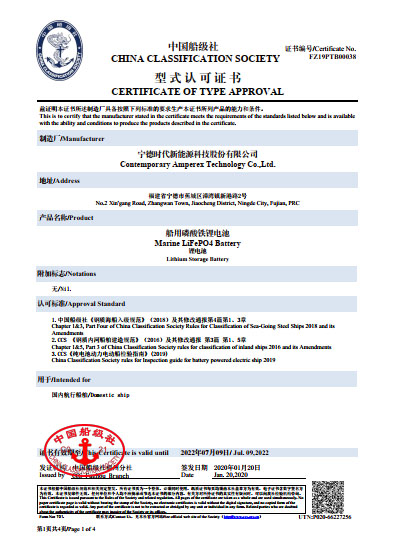 寧德時代海洋船舶動力電池系統(tǒng)擁有官方首套“身份證”。2020年4月,寧德時代成為國內(nèi)首家通過中國船級社(CCS)最新檢測指南《純電池動力船舶檢驗指南》認(rèn)可和檢驗(包括電芯、電池包、電池管理系統(tǒng))的動力電池企業(yè)。