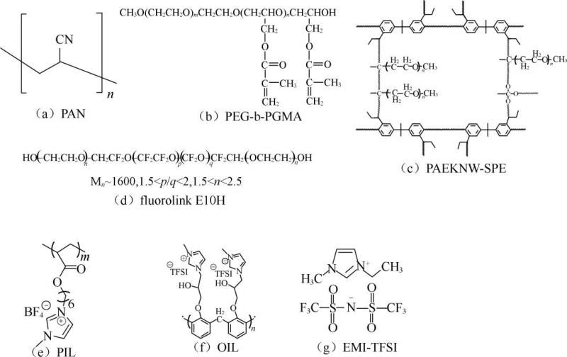 圖20 阻燃型凝膠聚合物電解質(zhì)中的聚合物或離子液體