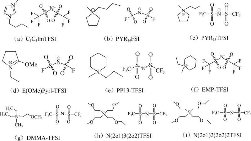圖18 一些離子液體陽離子和陰離子的結(jié)構(gòu)式