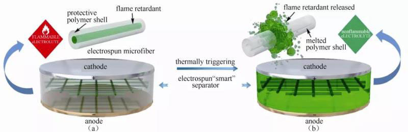 (3)發(fā)展聚合物微膠囊包裹阻燃劑的實(shí)用技術(shù),保證阻燃劑只在極端失控情況下起作用,并在大容量電池中驗(yàn)證此技術(shù)。