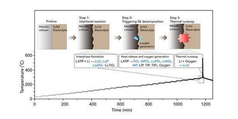 圖 3. 以LATP為例示意氧化物固態(tài)電解質(zhì)-金屬鋰熱失控反應(yīng)機理。