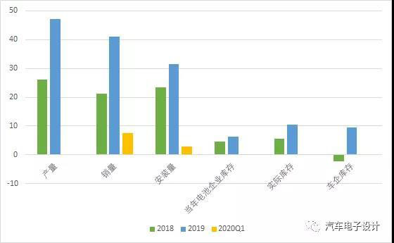 這種情況的存在,使得2019年出現(xiàn)了動力電池產(chǎn)業(yè)產(chǎn)量、銷量和裝車量的差異。兩個差值進行分解以后就得到了電池企業(yè)的庫存和車企的庫存。