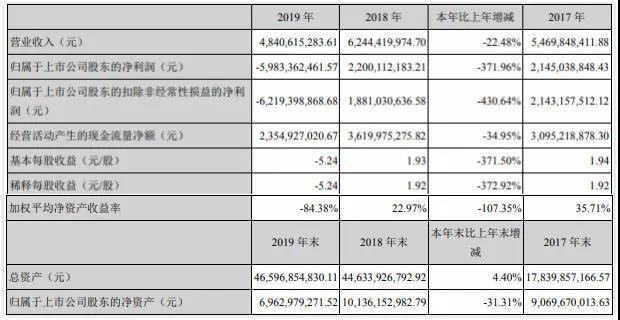 4月28日,天齊鋰業(yè)發(fā)布2019年年度報(bào)告,報(bào)告期內(nèi),公司實(shí)現(xiàn)營業(yè)收入48.41億元,同比下降22.48%;歸屬于上市公司股東的凈利潤(rùn)為虧損59.83億元,而上年同期為盈利22.00億元;歸屬于上市公司股東的扣除非經(jīng)常性損益的凈利潤(rùn)為虧損62.19億元,而上年同期為虧損18.81億元;經(jīng)營活動(dòng)現(xiàn)金凈流入23.55億元,同比下降34.95%;基本每股虧損5.24元。