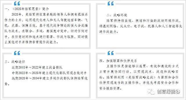2018年1月,美陸軍發(fā)布《陸軍戰(zhàn)略》(下稱《戰(zhàn)略》)未來十年建設和發(fā)展的相關文件,從愿景、戰(zhàn)略環(huán)境、戰(zhàn)略途徑闡述戰(zhàn)略內(nèi)容,提出四條戰(zhàn)略途徑。