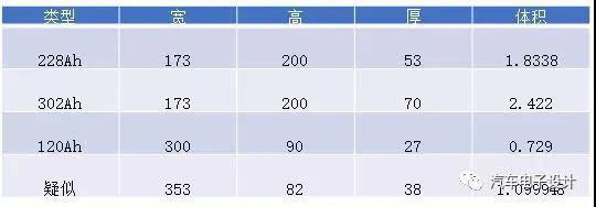 在這個思路下,我也找了一些大巴的電芯給,如下所示,這顆目前能量密度最高的302Ah是從原有的規(guī)格240Ah一路進化下去的。按照這個體積來算,比之前那顆,體積是2.2倍,換算一下之前長電芯容量137Ah,由于方殼厚+大尺寸電芯能充分利用空間,所以需要再打85%-90%的折扣,估算下來是120Ah左右。