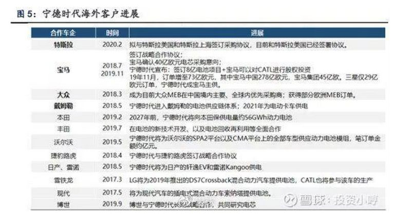 這一政策直接排除了松下和三星的競爭,為國內(nèi)電池企業(yè)發(fā)展壯大立下了汗馬功勞。同時寧德時代抓住這個有利時機,展開與華晨寶馬的合作,取得了寶馬背書,順利打開國內(nèi)外乘用車市場,合作伙伴遍布國內(nèi)外主要車企。