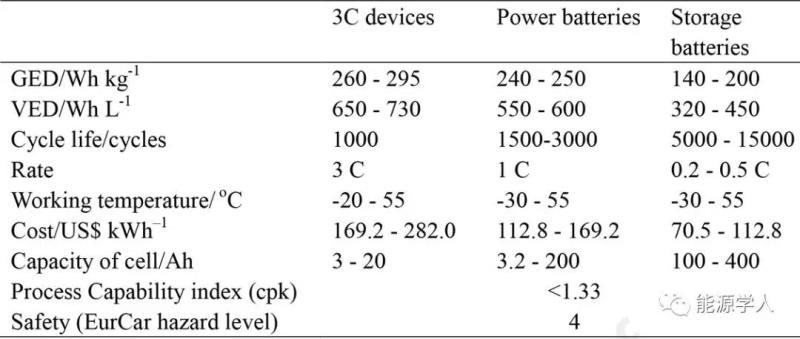 電池的選擇主要從正極和負極兩方面來考慮。選擇研究最為廣泛的Li、Na、K、Mg、Al和Zn作為負極,其可以與各種各樣的正極想配對。目前LIBs主要還是采用商業(yè)石墨作為負極,其理論比容量只有372 mAh g?1,目前LIBs在三種應(yīng)用領(lǐng)域下的性能如表1所示。