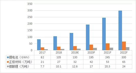 2017-2020年中國(guó)鋰電池產(chǎn)量對(duì)正極及碳酸鋰帶動(dòng)需求及預(yù)測(cè)