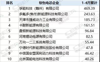 值得一提的是,自去年下半年以來(lái),多家電池企業(yè)軟包電池產(chǎn)能釋放,也推動(dòng)了今年1-4月軟包電池裝機(jī)量的增加。如捷威動(dòng)力、河南鋰動(dòng)、寧德時(shí)代去年1-4月軟包電池裝機(jī)量均為0,而今年都進(jìn)入軟包裝機(jī)量前10陣營(yíng)。電池中國(guó)網(wǎng)認(rèn)為,隨著各家企業(yè)軟包電池產(chǎn)能陸續(xù)釋放,今年全年軟包電池裝機(jī)量翻番基本沒(méi)有懸念。