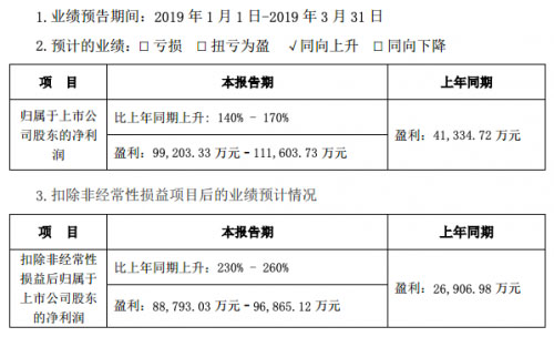 扣除非經常性損益后歸屬于上市公司股東的凈利潤為8.88億-9.69億元,同比增長230%-260%。