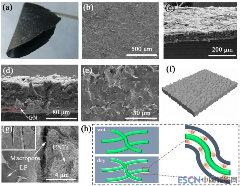 圖:“類鋼筋混凝土”柔性載硫體極片及相關結構示意圖