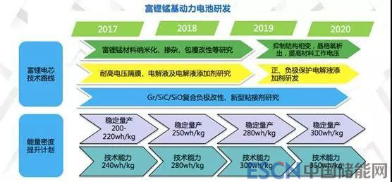 對于富鋰電芯技術(shù)路線的突破走向以及能量密度提升計劃,遨優(yōu)動力也做出了詳細(xì)的規(guī)劃,如下圖: