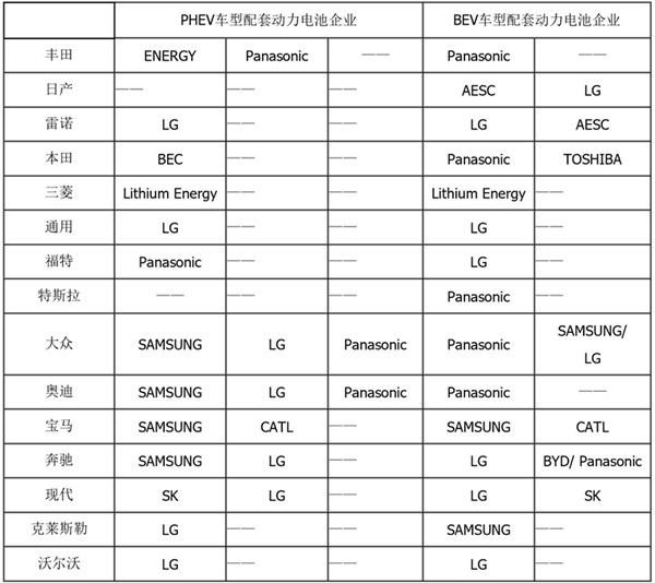 1、國(guó)際乘用車車企動(dòng)力電池配套格局
