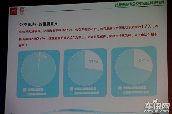11月4日,比亞迪在北京發(fā)布了城市公交電動化解決方案,針對出租車及公交大巴市場推出“零元購車·零成本·零排放”理念,這一方案旨在解決出租車公司及公交公司一次性購買電動車的資金壓力,同時加速公交電動化進(jìn)程。
