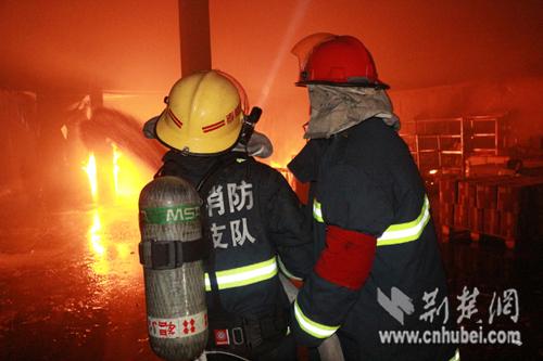 接到報警后,孝昌消防大隊立即出動了3臺水罐車和15名消防隊員趕到現(xiàn)場;孝昌縣澴城派出所值班民警岳星,也帶領(lǐng)8名聯(lián)勤隊員趕到了現(xiàn)場。到達現(xiàn)場后,當孝昌消防大隊大隊長錢光輝,了解到該廠倉庫中,堆放著一百多個塑料桶裝的易燃物后,立即指揮消防隊員從廠房西側(cè)和東側(cè)各出2支水槍,全力阻止火勢蔓延;一邊指揮民警和特勤隊員,轉(zhuǎn)移倉庫中堆放的塑料桶裝可燃物;隨后,撥打了孝感市消防支隊和相關(guān)部門的電話,請求援助。