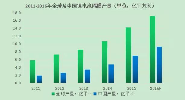 中國儲能網(wǎng)訊:受鋰電池市場快速發(fā)展影響,全球鋰電池隔膜市場快速增長,2015年,全球鋰電池隔膜產(chǎn)量約為14.2億平方米,較上年同比增長33.1%。受國內(nèi)新能源汽車市場繼續(xù)爆發(fā),動力鋰電池出貨激增影響,2015年中國鋰電池隔膜市場也取得快速發(fā)展。鋰電大數(shù)據(jù)調(diào)研數(shù)據(jù)顯示,2015年中國鋰離子電池隔膜企業(yè)產(chǎn)量為6.98億平方米,同比增長48.89%;2015年中國鋰電池隔膜產(chǎn)值26.53億元,同比增長57.67%。2016年上半年,全球鋰電池隔膜產(chǎn)量為7.9億平米,同比增長20.8%;中國鋰電池隔膜產(chǎn)量為4.0億平米,同比增長31.6%。