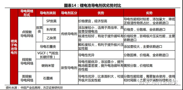 (鋰電池導(dǎo)電劑優(yōu)劣對(duì)比 圖片來源:知乎@行業(yè)研究)