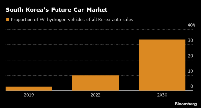 在新的綠色新政計劃中,韓國環(huán)境部提出2030年,車輛碳排放要降低到70克/ km(現(xiàn)在是97克/ km),公共部門的純電動和氫燃料汽車輛占比要達到90%,對電動商用車和氫能汽車的補貼也將增加。