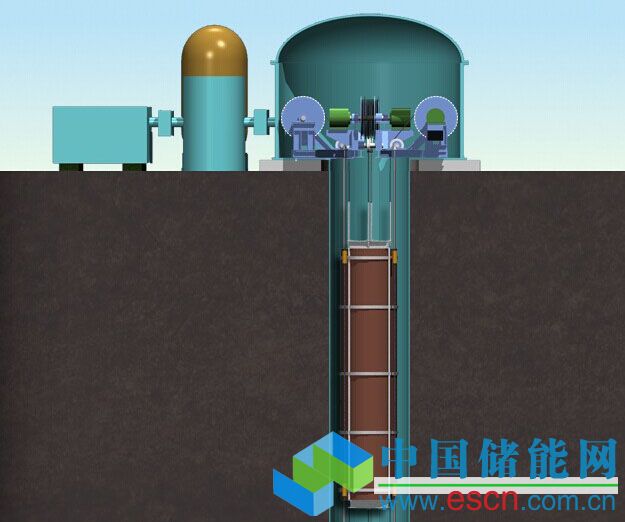 設(shè)計(jì)原理十分簡(jiǎn)單,提升重物(或者使用壓縮空氣抬高重物)來(lái)存儲(chǔ)能量,重物下落帶動(dòng)渦輪機(jī)(或者釋放壓縮空氣驅(qū)動(dòng)氣動(dòng)馬達(dá))釋放能量。