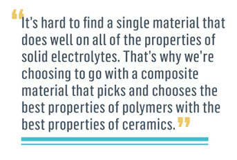 很難找到一種對固態(tài)電解質所有性能都合適的材料。這就是我們?yōu)槭裁磿x擇復合材料的原因,挑選性能最好的聚合物與性能最好的陶瓷結合。
